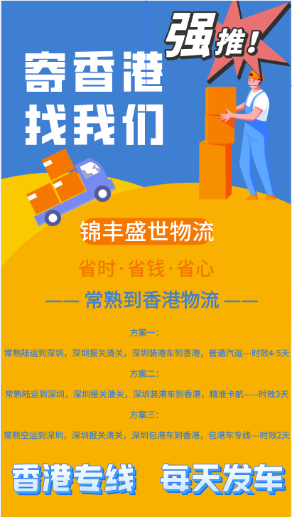 常熟到香港物流公司找錦豐盛世,我司提供常熟上門(mén)接貨,運輸,包報關(guān)清關(guān)及香港全境派送業(yè)務(wù)等.香港專(zhuān)線(xiàn),每天發(fā)車(chē).